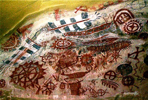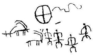 Солнце и крест - звезда в круге. Наскальный рисунок. Пещера Чумаш. Калифорния.