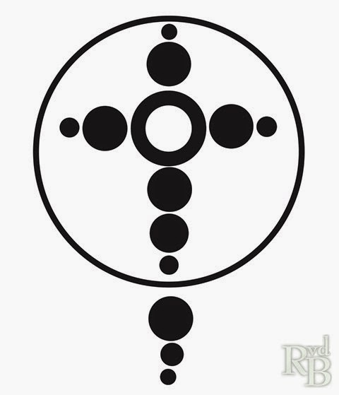 Прорисовка круга на полях. На рисунке изображена нейтронная звезда класса "пропеллер" (Тифон) и ее спутники. Дополнительная информация - общее количество кругов, вместе с большим кругом, насчитывается 11. За пределами большого круга имеется три дополнительных кружка. Если таким способом указана дата появления звезды, то она появится рядом с Землей в июле 2025 года. (2014 + 11 = 2025 г.) Апрель + три месяца - июль.