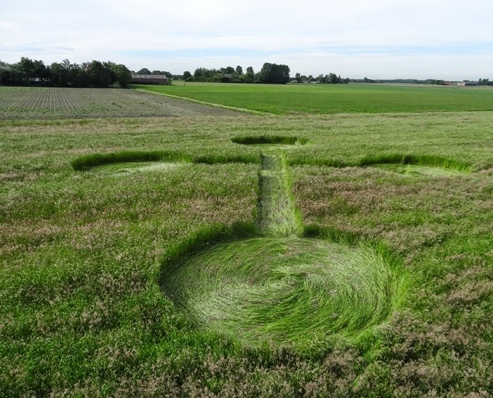 На человечестве поставлен крест. 20 мая 2014 года появились круги на полях. Нидерланды. Очередной заказ выполнен. Нейтронную звезду рядом с Землей создатели кругов на полях рисовали уже неоднократно. На этот раз они изобразили двойной символ - головчатый крест и крест - звезду и ее 4 наиболее крупных спутника - вид звезды до сближения с Солнцем.