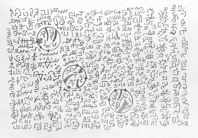 Рисунки Земли (круги с тремя точками - третья планета от Солнца), изображение катаклизмов, которые произойдут в это время, и множество чисел. Одни из них - это дата, когда произойдет вспышка на поверхности нейтронной звезды. Возможно, это событие произойдет через 30 - 40 дней.