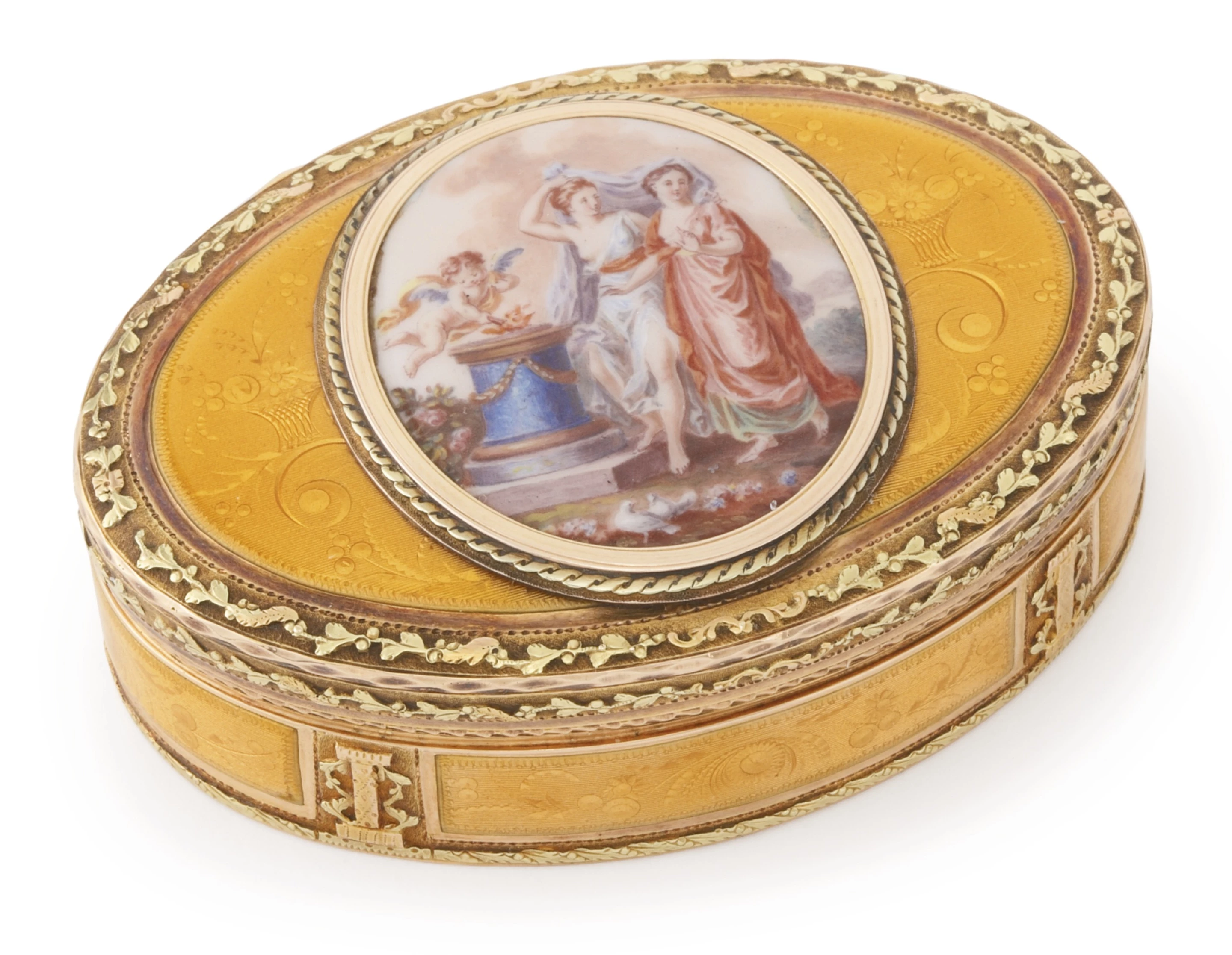 A gold and enamel snuff box, Swiss or German, circa 1790
