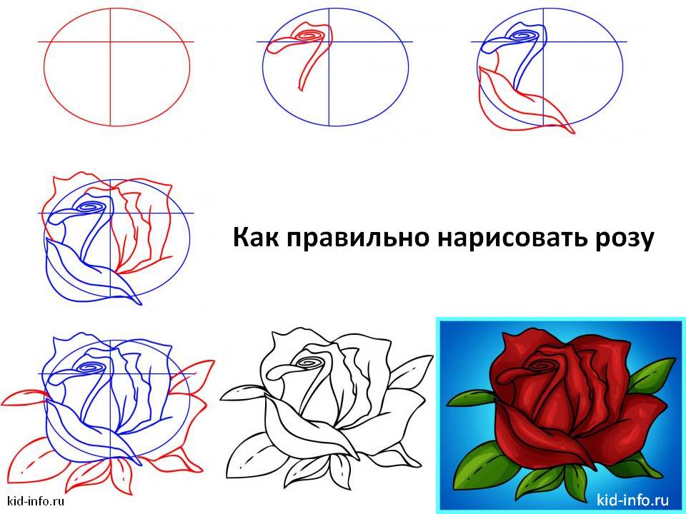 Используя данные инструкции поэтапного рисования розы, оформить открытку или рисунок смогут доже самые маленькие. Конечно же, если немного помогут родители.