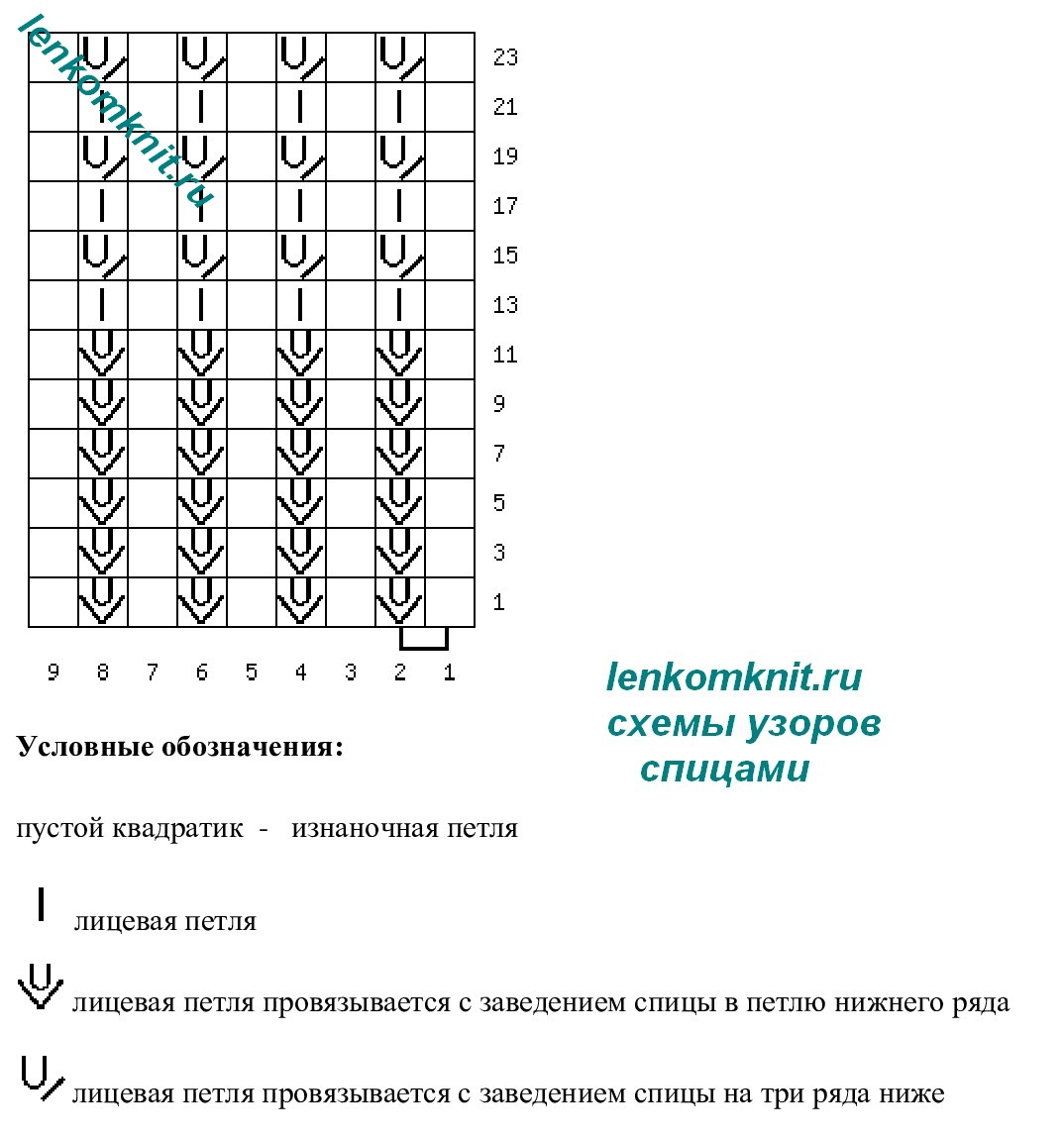 Узор тут использован фактурный, он несложный (схема приведена ниже). А акцент (кроме фактурной пряжи) сделан на детали.