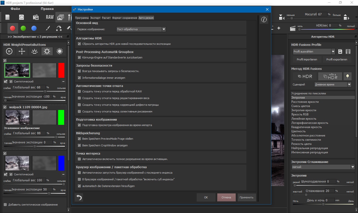 - HDR фотографии из одного изображения - автоматическое создание брекетинга.