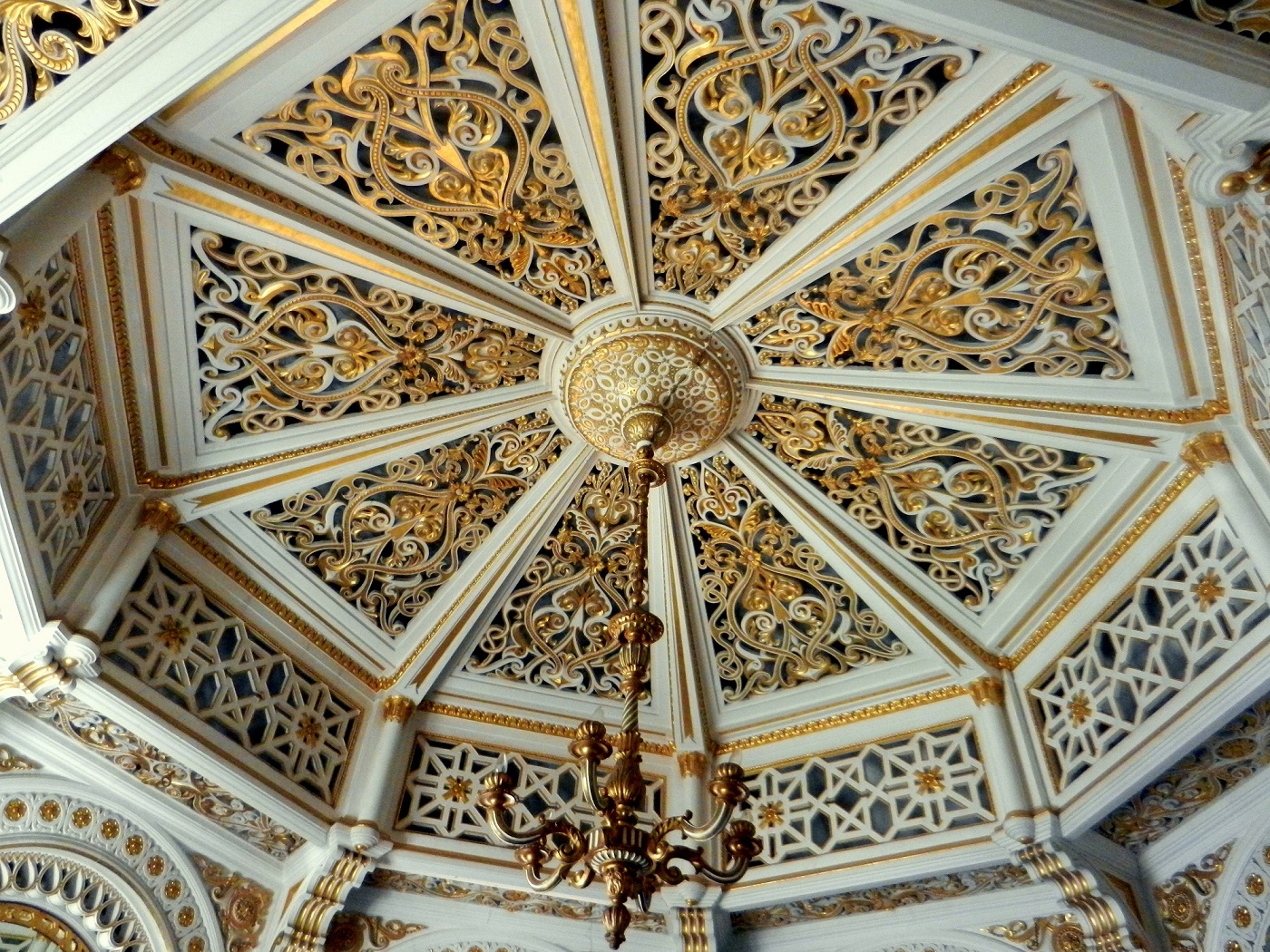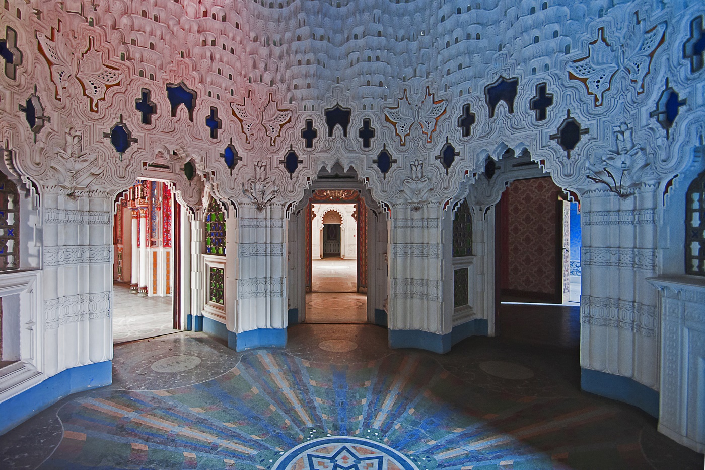 Абсолютно белый, этот зал спроектирован по типу традиционных замков Альгамбра (Alhambra). Его основной секрет – оптические и инженерные эффекты. Например, в центре зала раньше бил фонтан, питающий еще один фонтан ярусом ниже и восемь малых фонтанов по окружности.