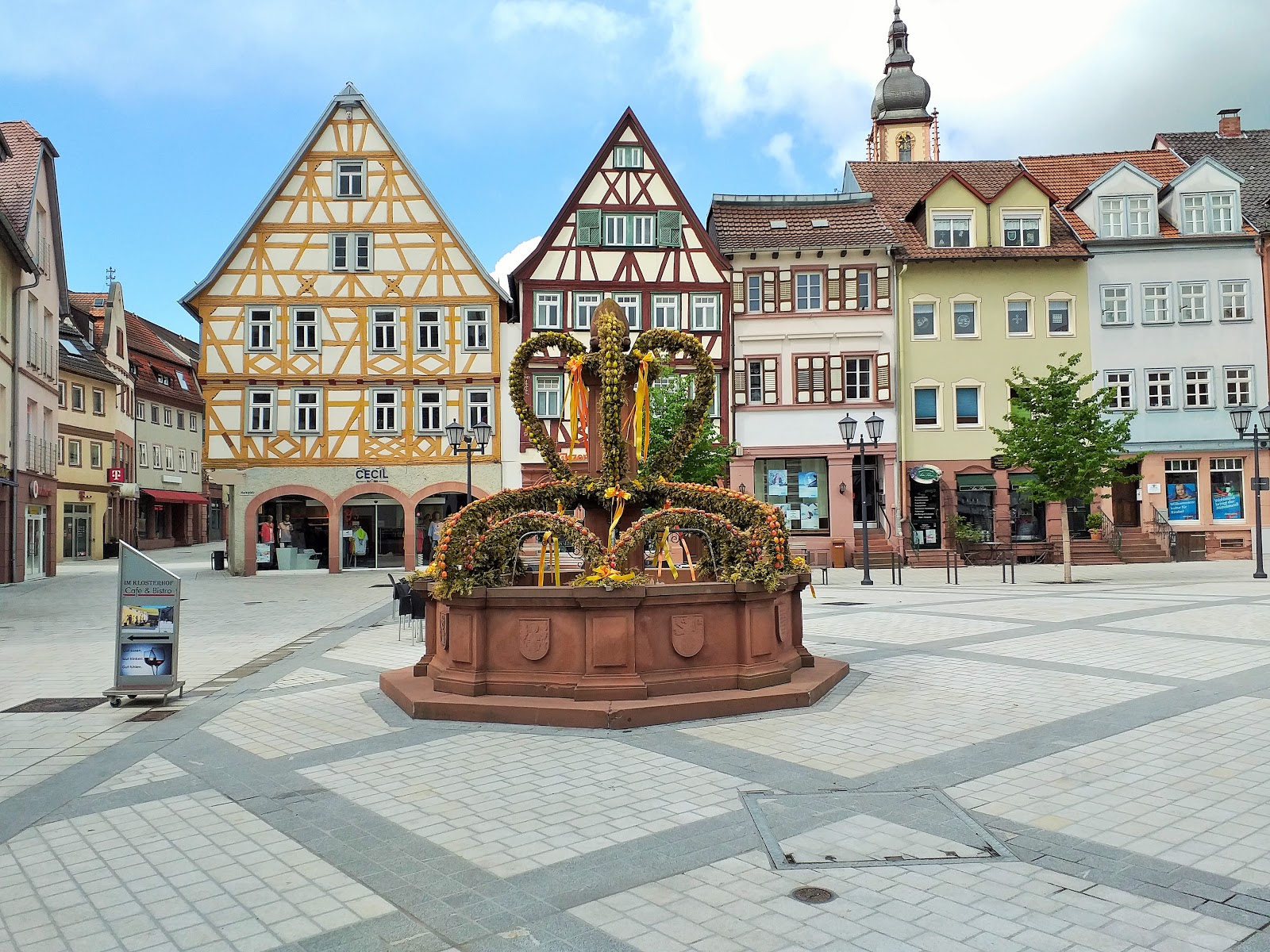 Первый женский монастырь страны был основан в 735 году англосаксонским миссионером Бонифацием. Барочный храм на главной площади городка Таубербишофсхайм носит имя первой настоятельницы монастыря Лиобы.