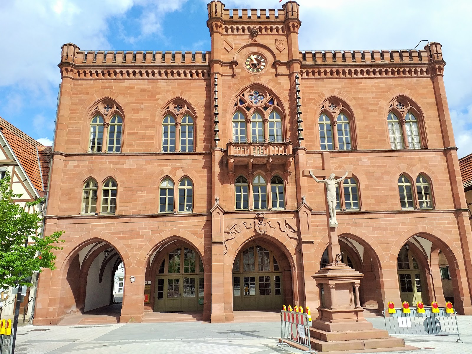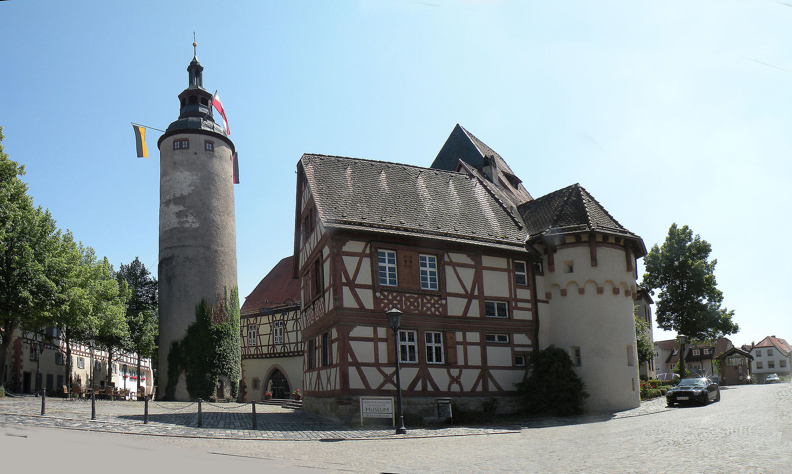 Рыночная площадь, здание ратуши и многочисленные фахверковые дома — с течением времени здесь ничего не изменилось. В XIII веке город находился под контролем князей-епископов Майнца и именно они построили замок в центральной исторической части города. В настоящее время это здание передано Региональному музею, а старая сторожевая башня и жилые помещения являются символом города.