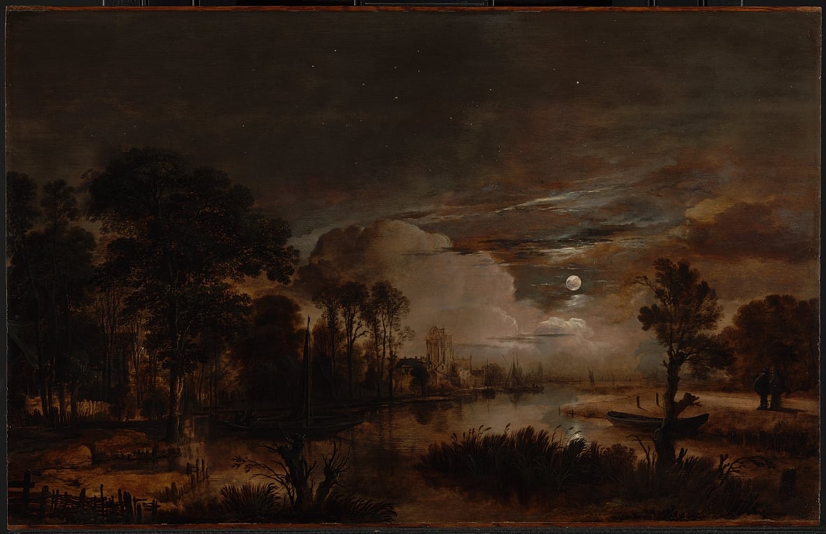 Aert van der Neer - Moonlit Landscape with a View of the New Amstel River and Castle Kostverloren