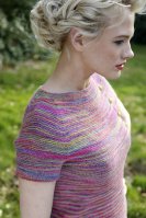 Кокетка связана прямыми и обратными рядами, затем деталь соединяется в области подмышек, и вяжется тело по кругу.