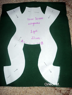 Первая игрушка у нас зеленого цвета, лягушка. Я сделала двух- побольше и поменьше. С ними можно учить такие понятия - больше-меньше, тяжелее-легче. Выкройку можно перерисовать прям с экрана, увеличив до нужного размера или нарисовать от руки. Расстояние АВ не зашиваем для набивки.