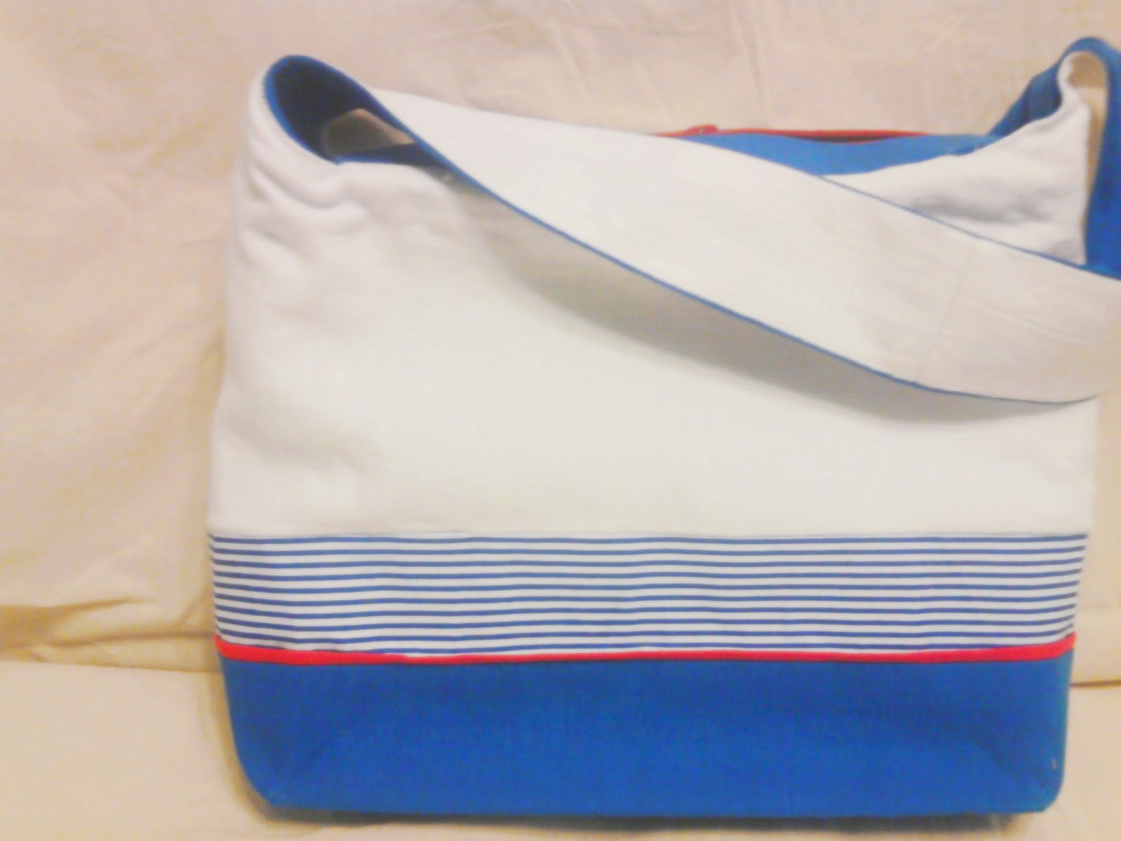 Материалы: белый, синий и красный белорусский лен, ткань в сине - белую и красно - белую полоску - хлопок. Сумка прекрасно держит форму за счет дублирина.