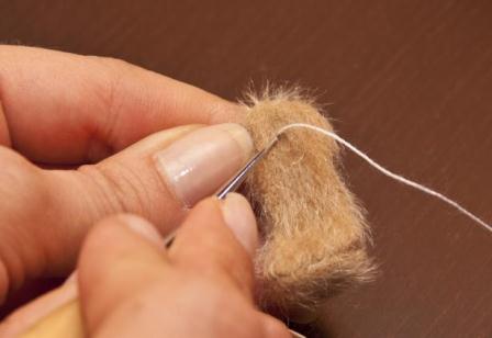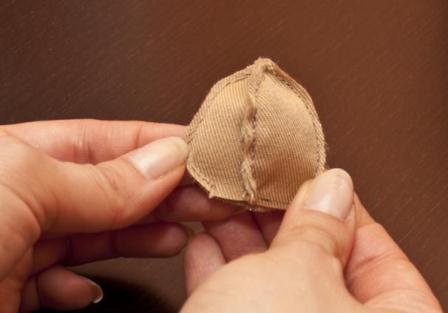 Ушки зашиваем потайным швом и стягиваем в виде пельмешки.