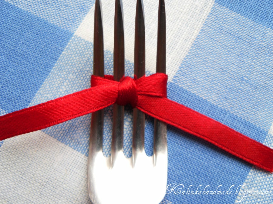 На вилке это делать удобнее. МК по завязыванию маленького бантика на вилке скопирую из другого поста.