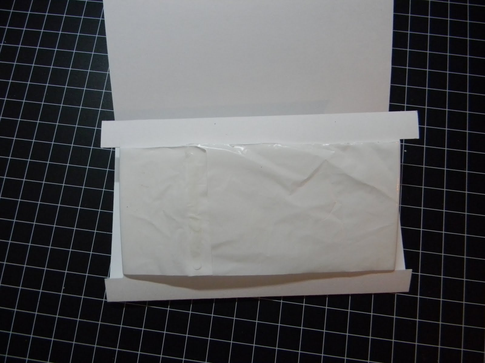 Далее нужно взять полоску целофана шириной 7см(так как ширина выемки составляет 7.2см), два листа бумаги размерами 10*16.7 (вкладыши, которые будут выезжать)