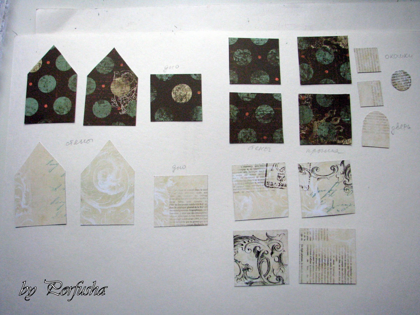 далее обклеиваем весь домик деталями красивой бумаги.