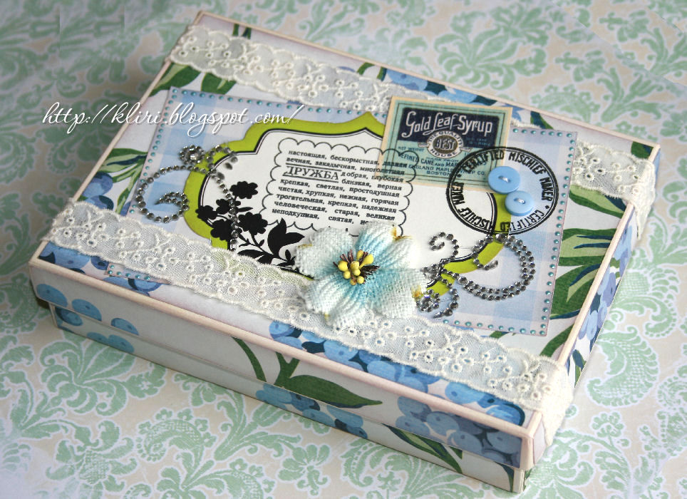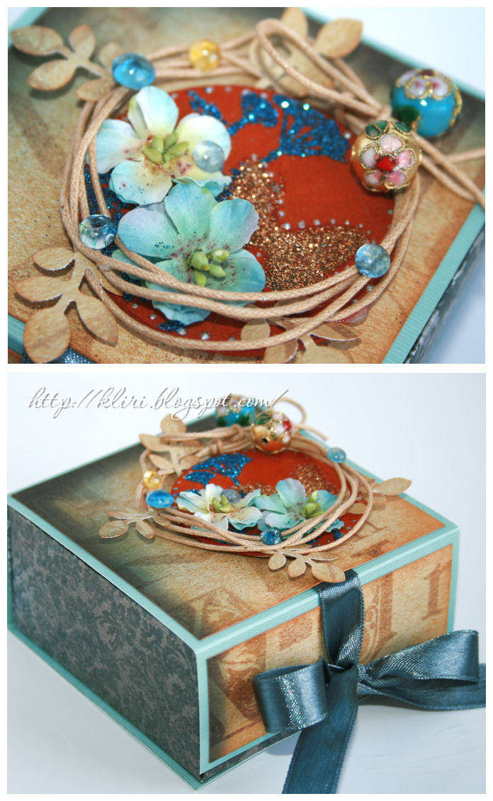 2. Обматываем окрашенную деталь из чипборда кружевом, вощёным шнуром, украшаем тесьмой с помпонами, тычинками и бусинами.