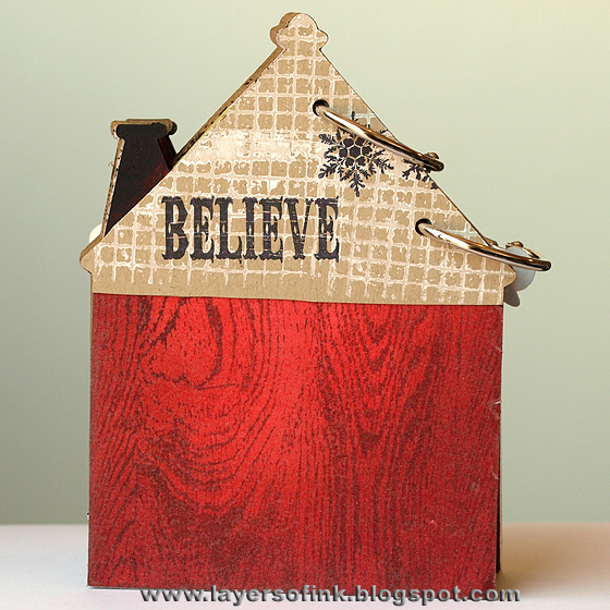 I cover the lower part of house (below the roof) with Tim Holtz's new Frosted Film. This gives a great subtle shimmer to the house, and also protects the covers from dirty little fingers.