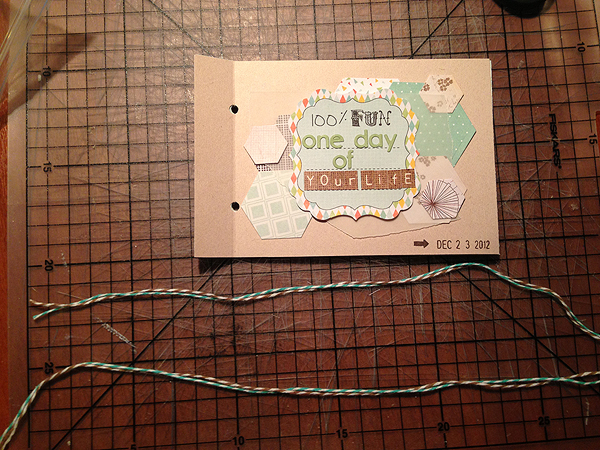 И шнуры от обеих дырочек также связываем между собой. Так, если вы сделаете вертикальную раскладку альбома, то его потом можно будет повесить на стенку.