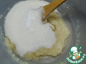 Добавить затем в заварное тесто сахар, ванилин, хорошо перемешать.