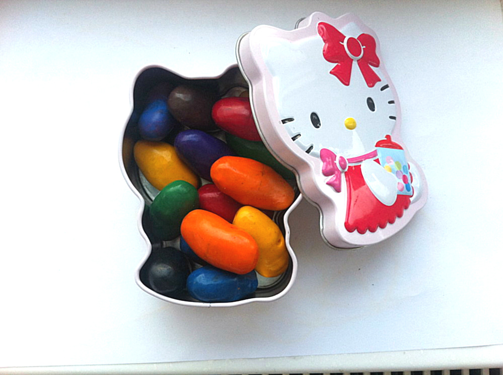 В любом доме, где есть ребенок, когда-то появляются восковые мелки. Еще бы, ведь это отличный способ для развития мелкой моторики ребенка, его воображения и творческого самовыражения. К тому же, восковые мелки удобные, не требуют воды/кисточки/последующей уборки места и рук от краски, не пачкаются (если конечно они смываемые, как делают большинство фирм-производителей, к счастью)..... НО! Практически все мелки разных фирм рано или поздно превращаются в огрызки, обломки и валяются потом в самых разнообразных местах (у нас - в игрушках, за шкафом, под диваном и даже среди игрушек в ванной). Думаю, у каждого ребенка найдется ассорти из неопрятного вида мелков. Вот и наше