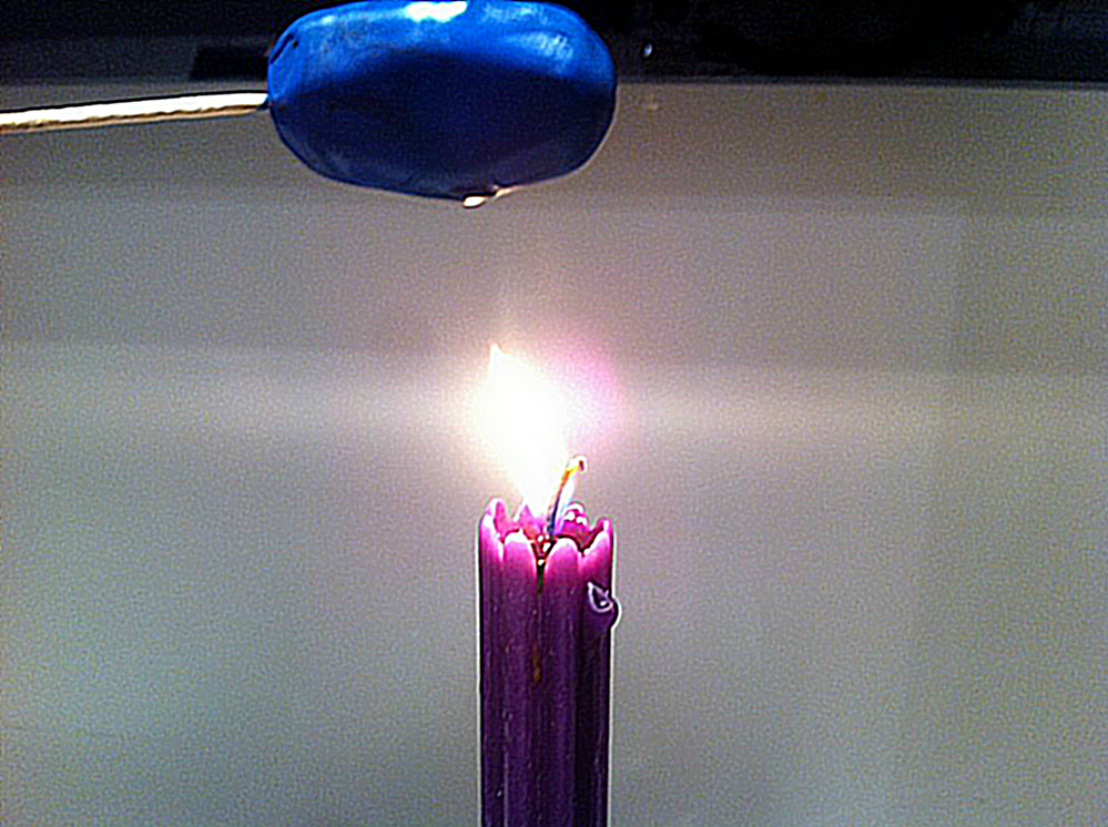 После зубочистки на мелке остается заметная дырочка, ее мы замазываем, нагревая это место над свечой и приглаживая пальцем В итоге наших стараний должен получится более или менее обтекаемый мелок с гладкой поверхностью. Конечно, не идеально, но разница есть
