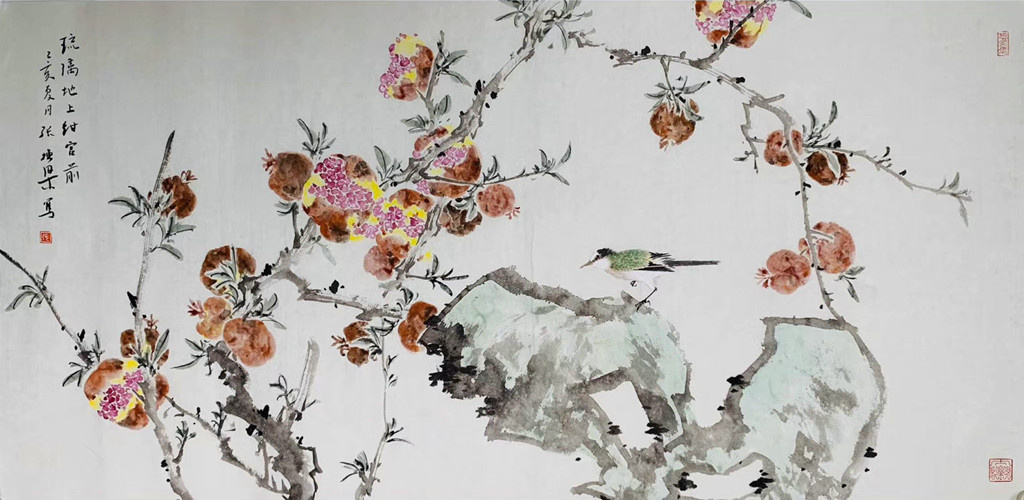 "Цветущее богатство" / Ван Баоцинь ; Рисовая бумага, 180 × 88 см