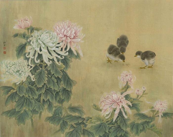 Шелковый набор "Картина с хризантемой" Династии Цин; Чжан Тунцзэн (41 см х 55 см, Коллекция Нанкинского музея)