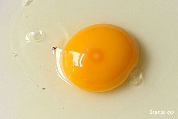 Смотрим фото. Это яблочко на поверхности желтка – зародышевый диск, из которого получится цыпленок.
