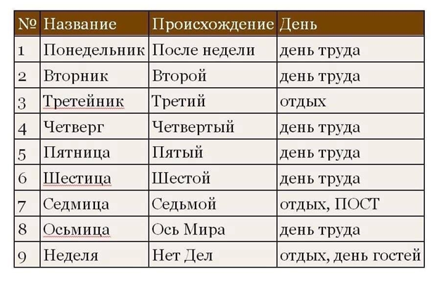 Названия дней недели были гораздо проще и логичнее современных аналогов: