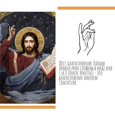 Самое узнаваемое сложение пальцев при благословении — это когда большой и безымянный палец соединяются вместе (символизируя Троицу), а остальные пальцы выпрямлены. Присмотритесь: два пальца образуют букву «I», а сложенные три — «С». На церковнославянском это буквы «I» и «С» — начало имени «IСУС». Таким образом, священник или святой на иконе не просто благословляет, но как бы полагает на человека само Имя Спасителя.