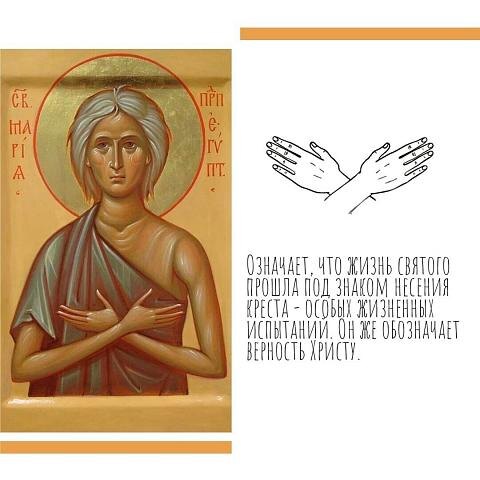 Этот жест, часто встречающийся на иконах, имеет несколько значений. Он может символизировать покорность, смирение (как жест слуги перед господином) и, конечно же, крест. Сложенные крестообразно руки напоминают о крестной жертве Христа, которой спасается мир, и о том, что каждый христианин должен нести свой жизненный крест.