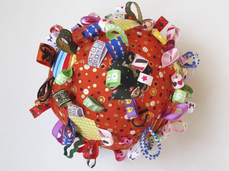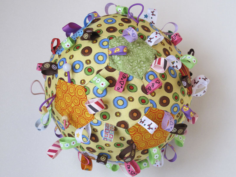 Все было не так страшно, как кажется, главное соблюдать места пришивания клиньев по цвету. Хотя и я иногда тупила и мне приходилось кое-что распарывать. На каждой грани мячика вшита ленточка или резиночка с бусиной.