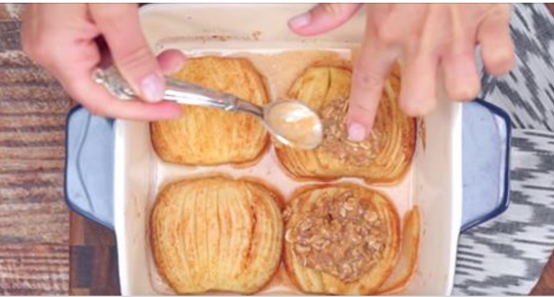 Скоро придет осень, а это значит, что пора запасаться всевозможными рецептами десертов к горячему чаю. Поэтому «Так Просто!» подготовил для тебя один из самых необычных рецептов блюд из яблок. Ни для кого не секрет, что этот фрукт замечательно сочетается с корицей, но мы тебе также предлагаем добавить овсяные хлопья. Аромат этого блюда сразит тебя наповал. Обязательно попробуй приготовить такие запеченные яблоки!