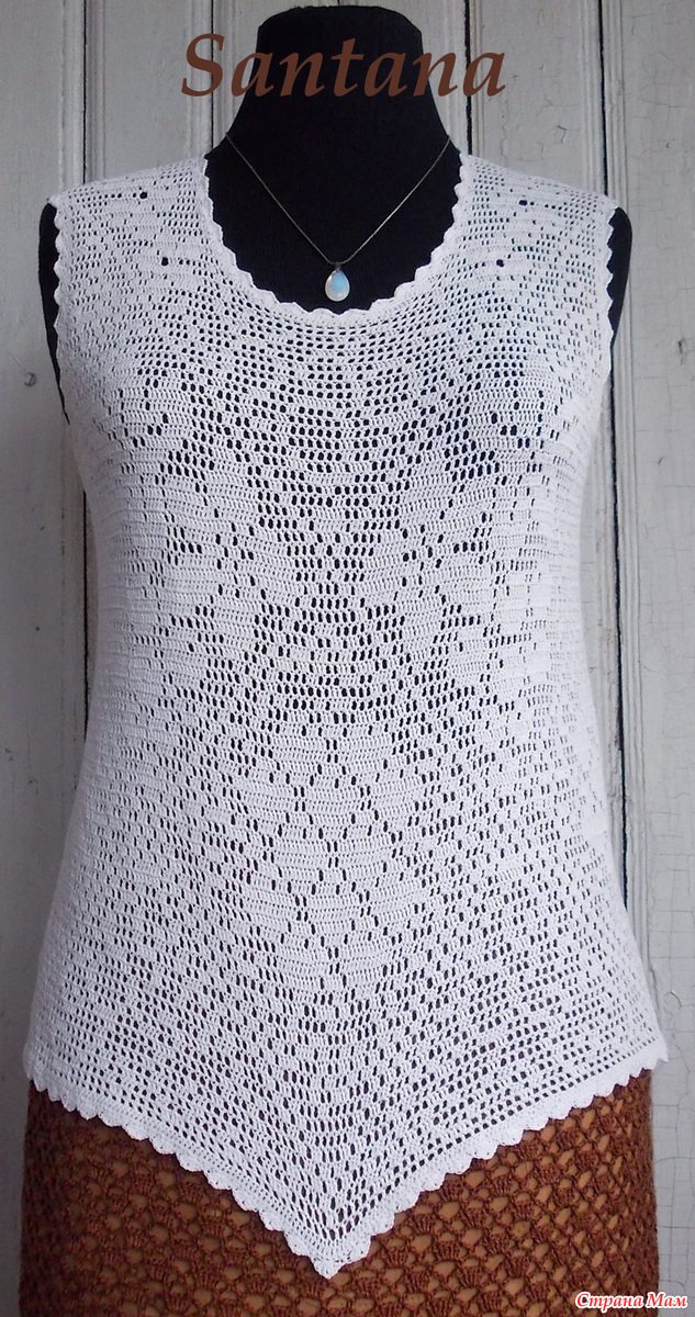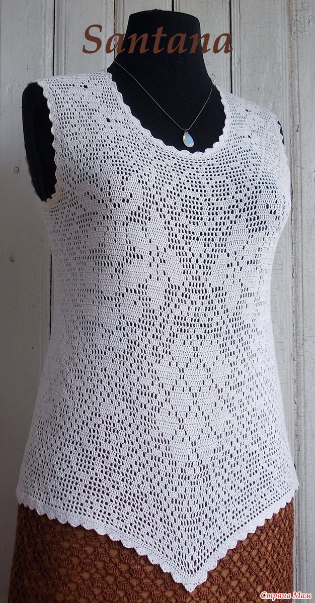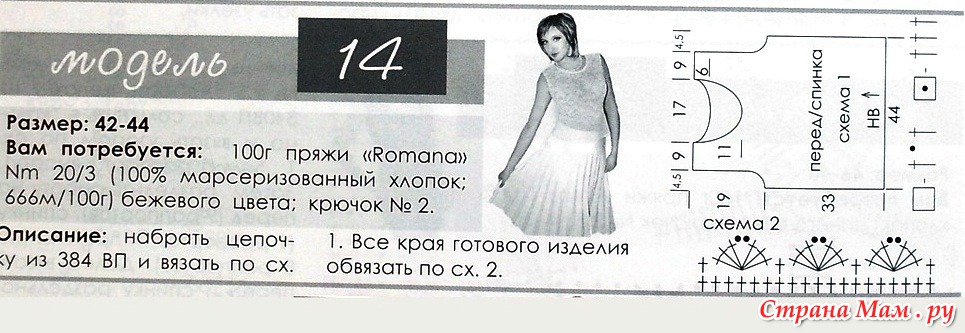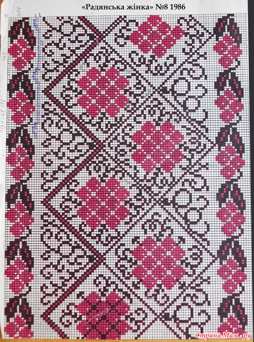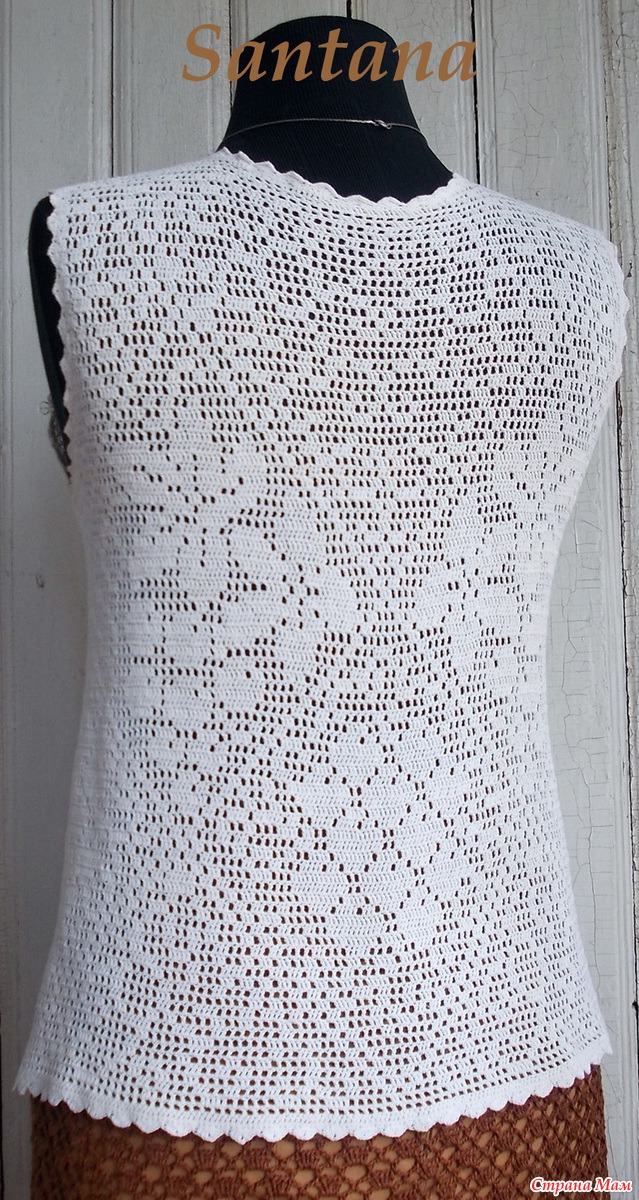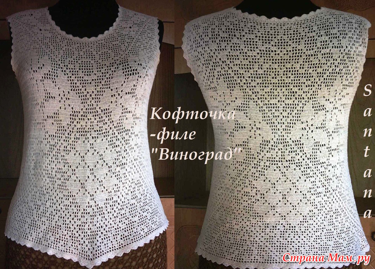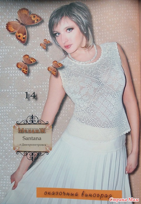 Вязала ей из тонких катушечных ниток, но сейчас, когда от разнообразия и ассортимента пряжи глаза разбегаются её можно связать, используя любую тонкую пряжу. Толчкам к созданию этой кофточки послужила схема для вышивки опубликованная в журнале «Радянська жiнка» №8 за 1986 год