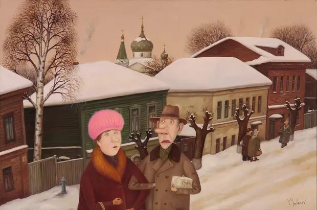 В одном своём интервью художник признался, что персонажи его картин – это «Простые люди, которые не читали Гегеля и Канта, но зато они бескорыстны, и чисты сердцем. И пусть у них нет коммерческой жилки, но зато есть стремление к счастью».