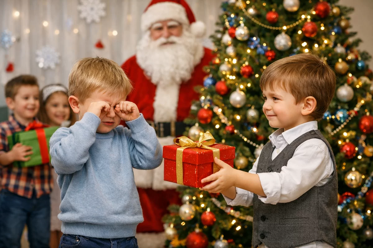Все началось как обычный новогодний утренник. Дети в нарядных костюмах, родители с телефонами наготове, аниматор в красном тулупе с мешком подарков. Классика жанра. Но когда Дед Мороз начал раздавать сладкие сюрпризы, выяснилось — одному малышу ничего не досталось.
