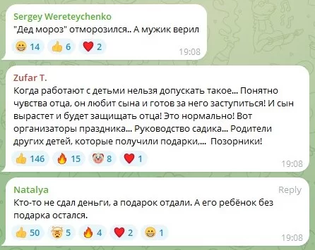 «Чисто по-человечески отец прав — ребёнку обидно. Однако именно взрослый должен показать пример того, как решать проблемы. А можно было спокойно сказать ребёнку, что дедушка старенький, заблудился, и оставил подарок в группе», — пишут одни.