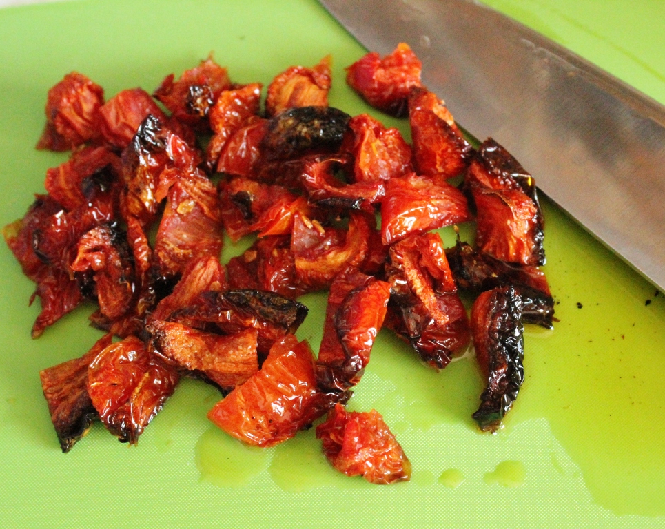 Сливочное масло растопить.Вяленые помидоры крупно нарезать.