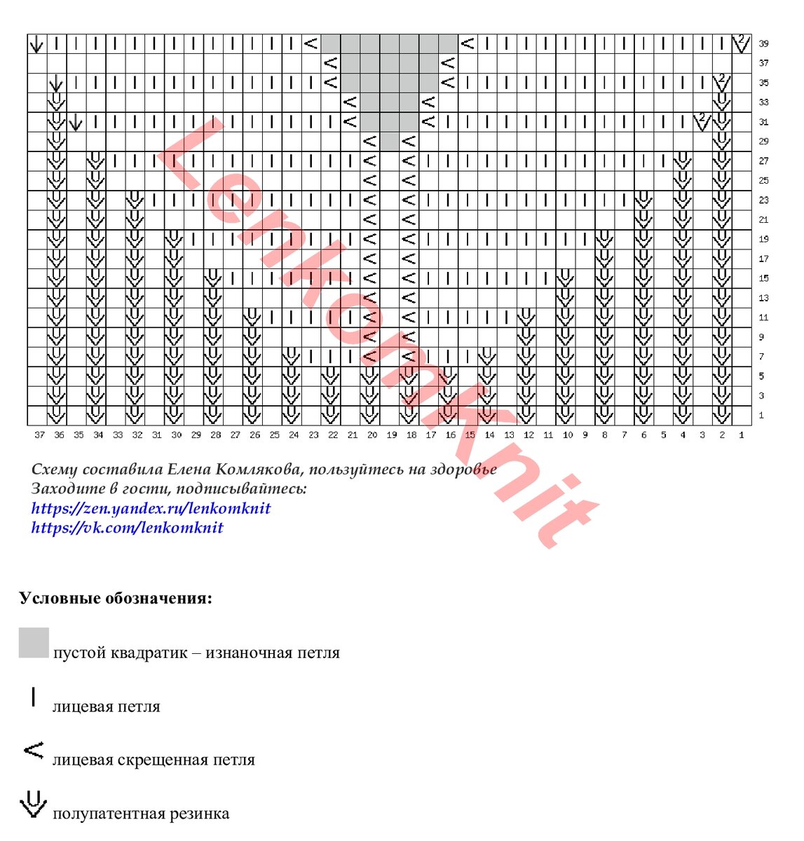 Первая схема к этой безрукавке - резинка внизу. Она не простая, а со встроенным узором: