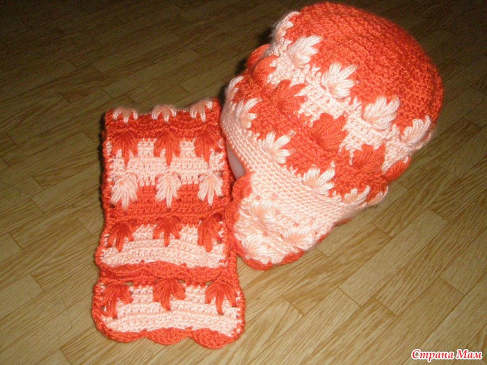 Этот комплект вязала на глубокую осень и до весны, моя авторская работа. Шапочка двойная крючком, шарфик вязала крючок+спицы. Вяжется быстро и легко, Пряжа Daniela(этикетка не осталась), крючок №3,5 спицы №4