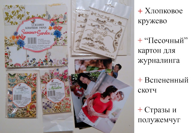 Материалы, которые были использованы в этом альбоме все довольно экономичные. И их очень немного. А получилось вот так многослойно и пышненько в каждом развороте. Все материалы можно приобрести в