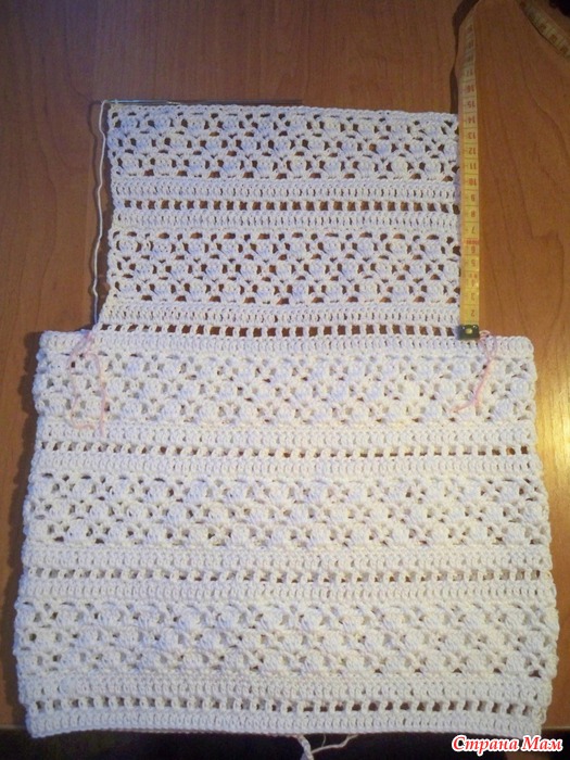 Потом наметила проймы я вязала дальше ровно. В высоту два рапорта