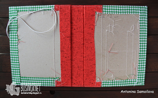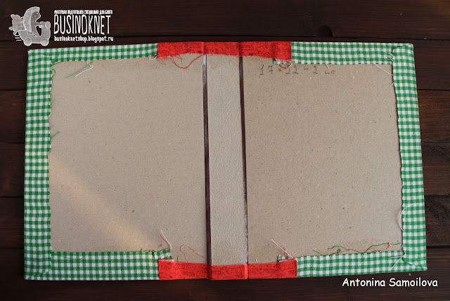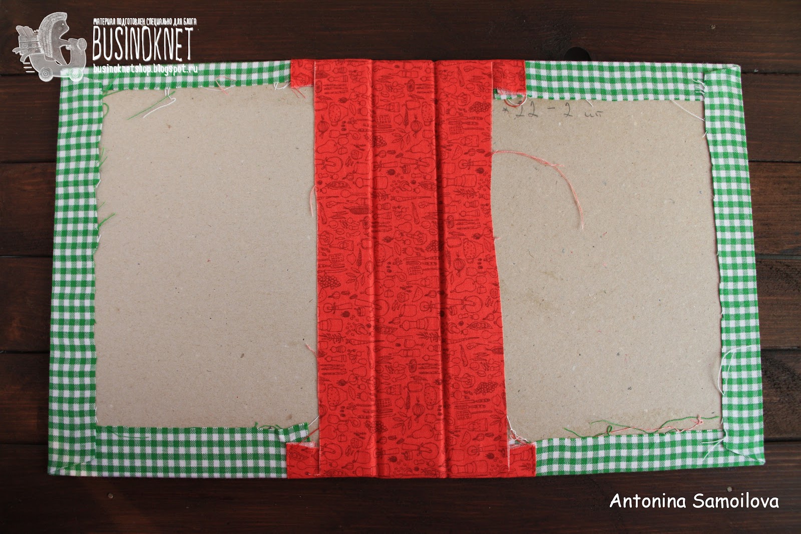 Друзья, если Вы используете для обложки ткань с геометрическим рисунком, то будьте аккуратны. Так как данная ткань быстро выдает неровную натяжку и сразу придает неряшливость работе.