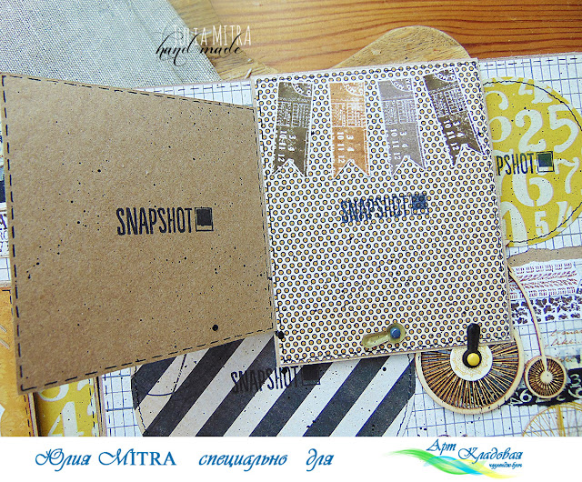 Итак, начнем, пожалуй, с самого начала - обложки. Как большой любитель штампинга, я активно применяю вырезушки в любых доступных местах. И поэтому даже обложка у меня выглядит сложной и объемной в плане наслоения декора.