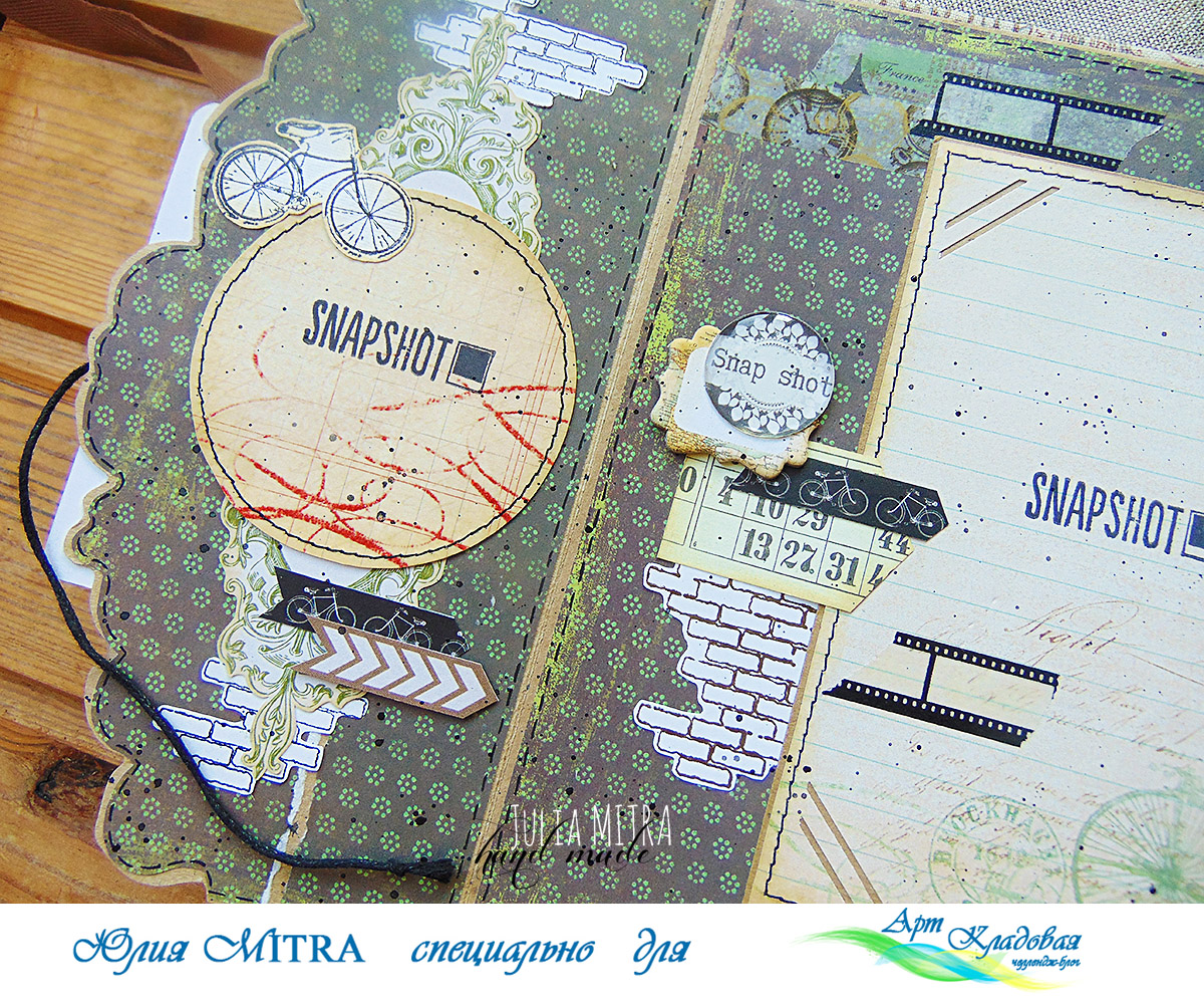 Итак, приступим - 1 разворот. Его колор зеленоватый, а тема - вело и карта.