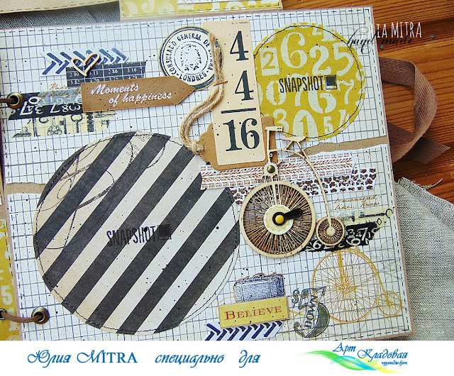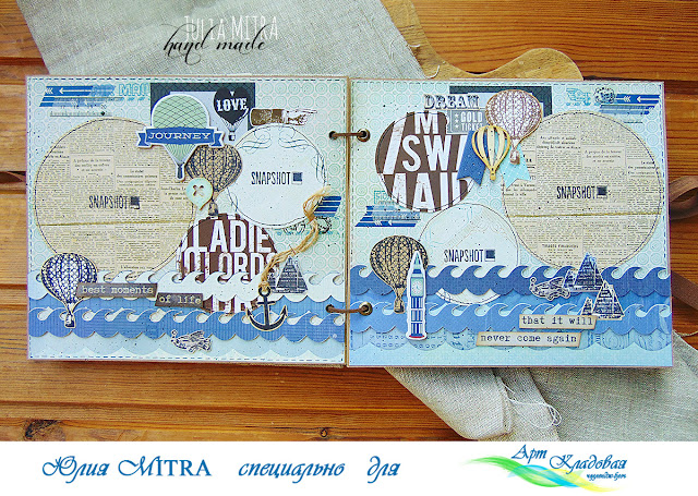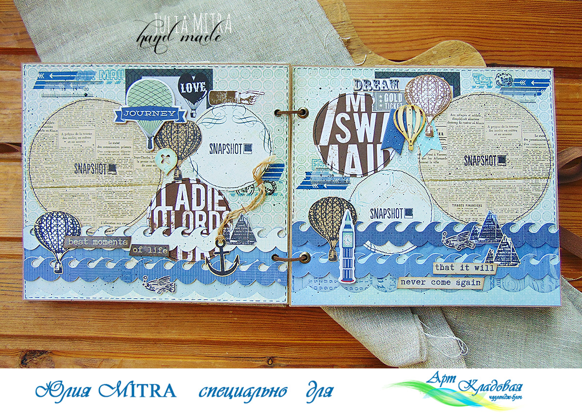 Наверное, это мой самый любимый разворот. Здесь все на виду, и парящие воздушные шары над морскими "волнами" весьма гармонируют с круглыми подложками для фото.