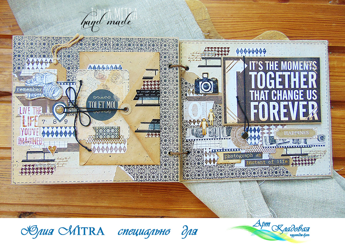 Итак, представляю вам большой и почти квадратный (формат 21*24 см) альбомчик на 5 разворотов под названием "Adventure for Two".