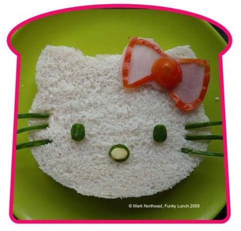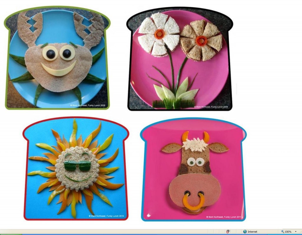 Очень оригинальное оформление бутерброда в форме двух сердец,изображающих мужчину во фраке и женщину с декольте.Обычные продукты:тост с маслом,рубленные оливки и красная икра.