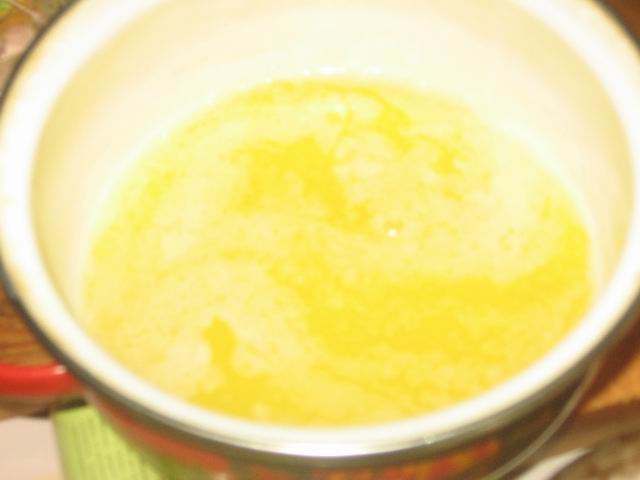 Тем временем растопить сливочное масло. Сразу добавляем в него соль, чтобы впоследствии она не соприкасалась с дрожжами.