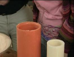 Для работы потребуем 2-3 литра воска или парафина, формы на вазы. Как форму можете использовать различные контейнеры - керамические или стеклянные вазы, пластмассовые трубки. Можете украсить вазы красками на воск (парафин) или в технике декупажа. Кроме того можно в воск (парафин) добавить ароматные масла.